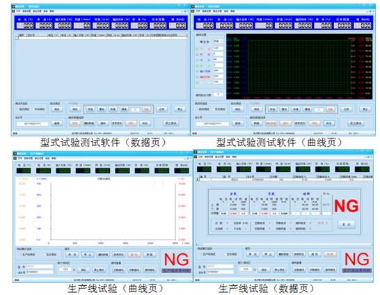 9、生產線測試功能:隨著客戶對電機品質控制的不斷提升,出廠時除對傳統電機輸入參數測量控制外,特別增加對電機輸出參數(轉矩、轉速、輸出功率、效率)的測量控制,在正反轉狀況下可自動連續依次測量電機空載、負載(或多點)及堵轉狀態的輸入電壓、電流、功率、輸出轉矩、轉速、輸出功率及效率的測量。本公司經多年研制,采用獨特的圖象、曲線仿真功能,采用最優的區間設置平均算法,并自動依電腦設定上下限自動判斷OK/NG。此功能不僅數據重復性好,而且比較直觀發現電機安裝或試驗過程中測試數據異常的現象。
